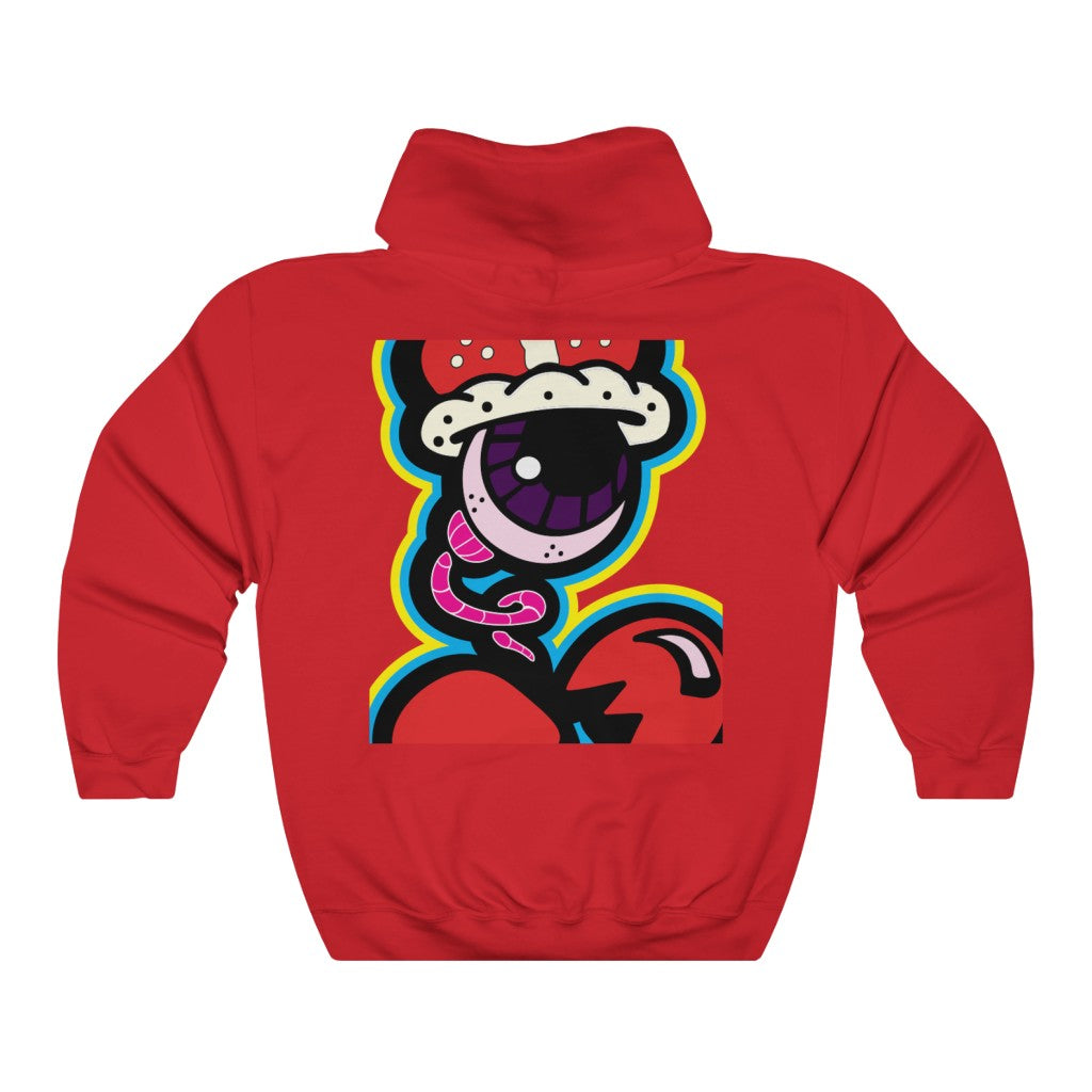A unisex heavy blend hooded sweatshirt is relaxation itself. The material is a thick blend of cotton and polyester. This makes for a plush, soft feel alongside warmth. It's also a great surface for printing. There are no side seams. A spacious kangaroo pocket hangs in front. The hood's drawstring is the same color as the base sweater.